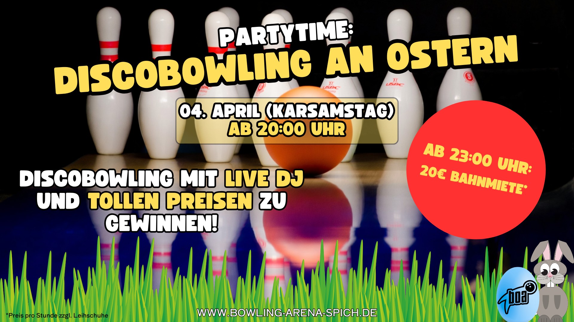 Schwarzlicht, Discomusik und Bowling Games mit DJ.