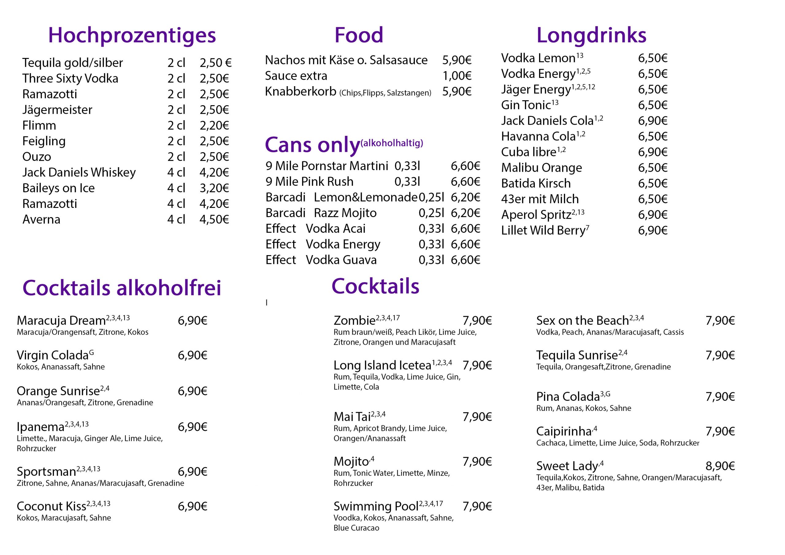 Getränkekarte