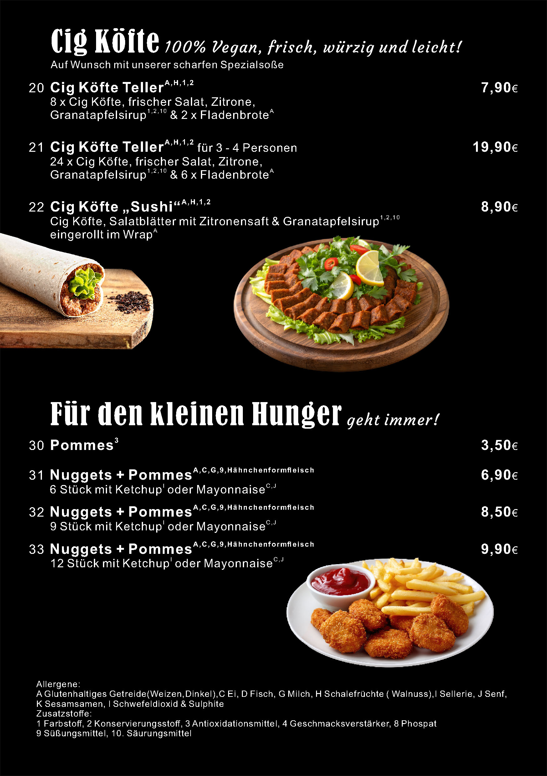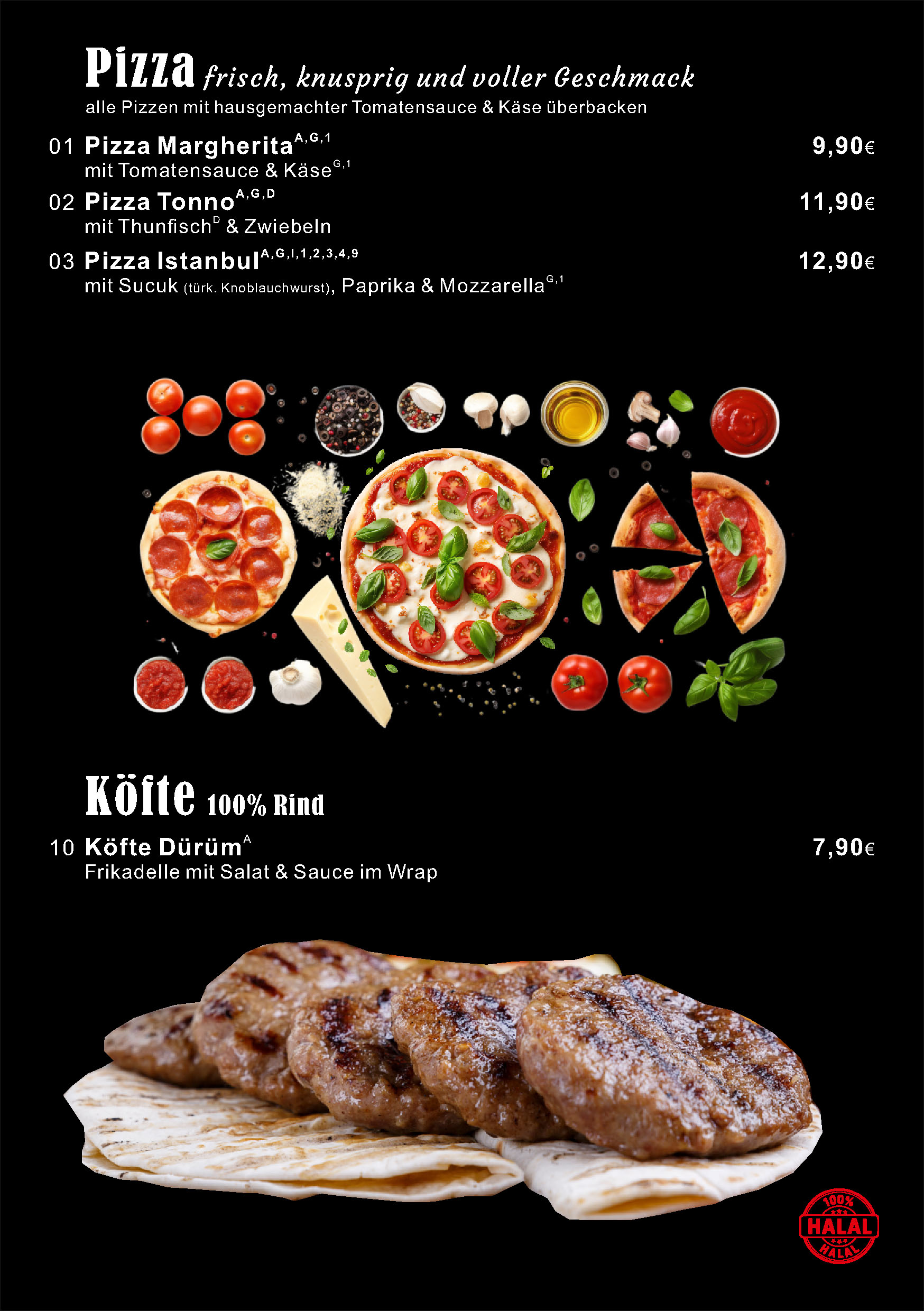 Aktuelle Speiskarte. Bitte beachten Sie die Küchenzeiten.
